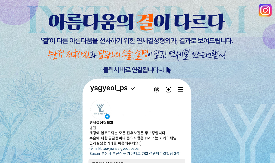 연세결성형외과는 세련된 예술 감각과 디테일한 수술로 여러분께 '결'이 다른 아름다움을 선사합니다.